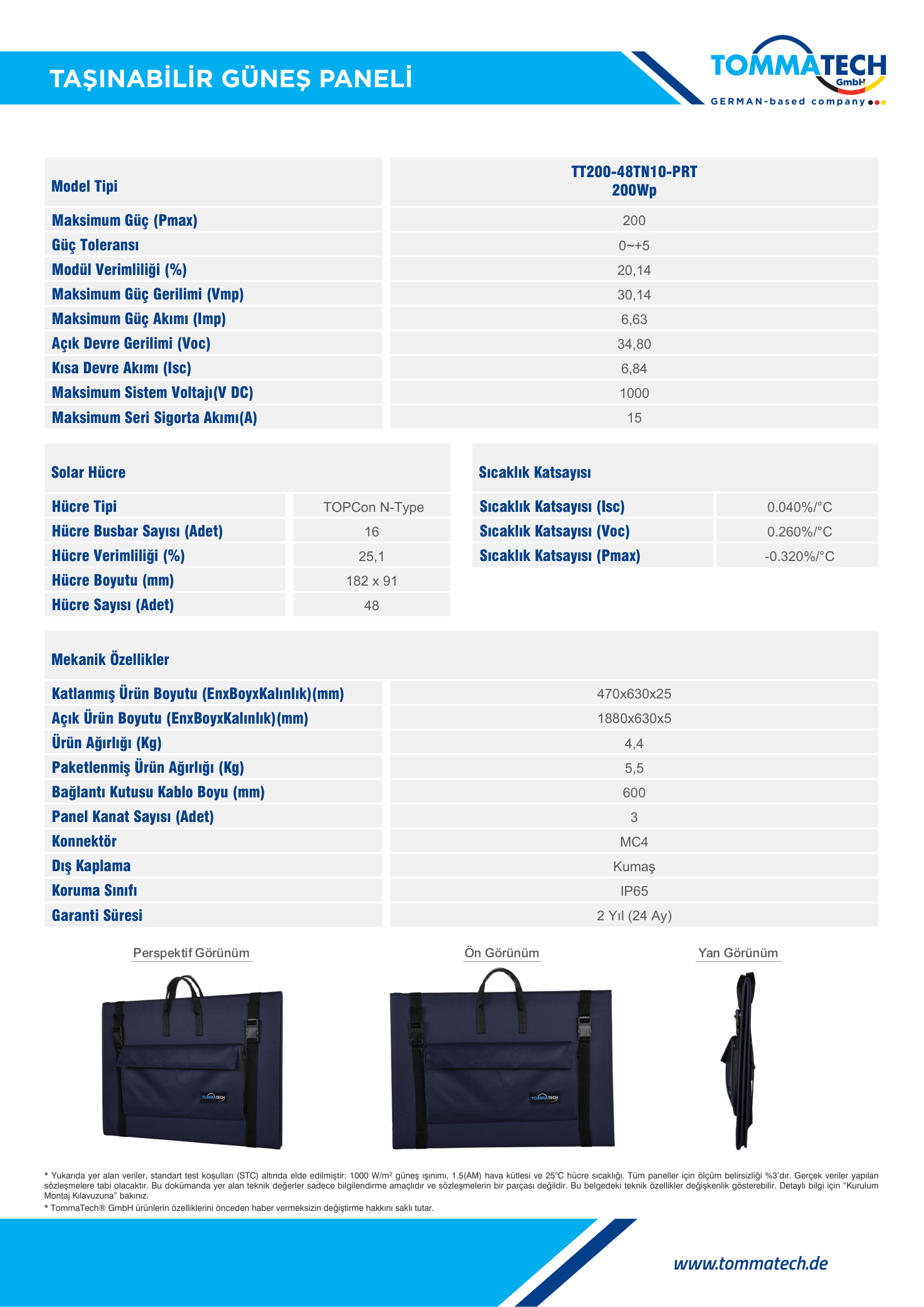 TommaTech 200W Taşınabilir Güneş Paneli